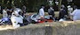 Reclining Biker admires Lewis Hamilton's F1 car
