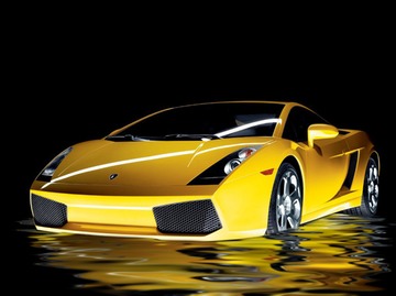 Lamborghoni parked at edge of a Photoshop created flood
